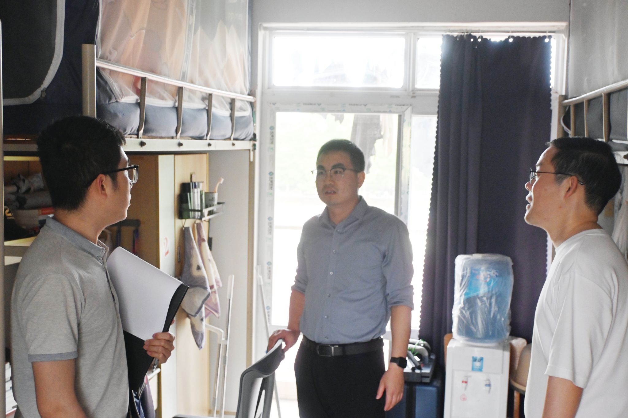 在走访毕业年级宿舍过程中,院领导与即将毕业的学生们,就近期实习、就业状况进行了了解沟通。对于部分表露出就业压力和毕业焦虑的学生,给予出充分鼓励并提供可行性建议。对于各类困难学生宿舍也做了重点关注,深入宿舍和相关学生谈心谈话,以掌握思想动态和学习生活情况,落实暖心关心举动。